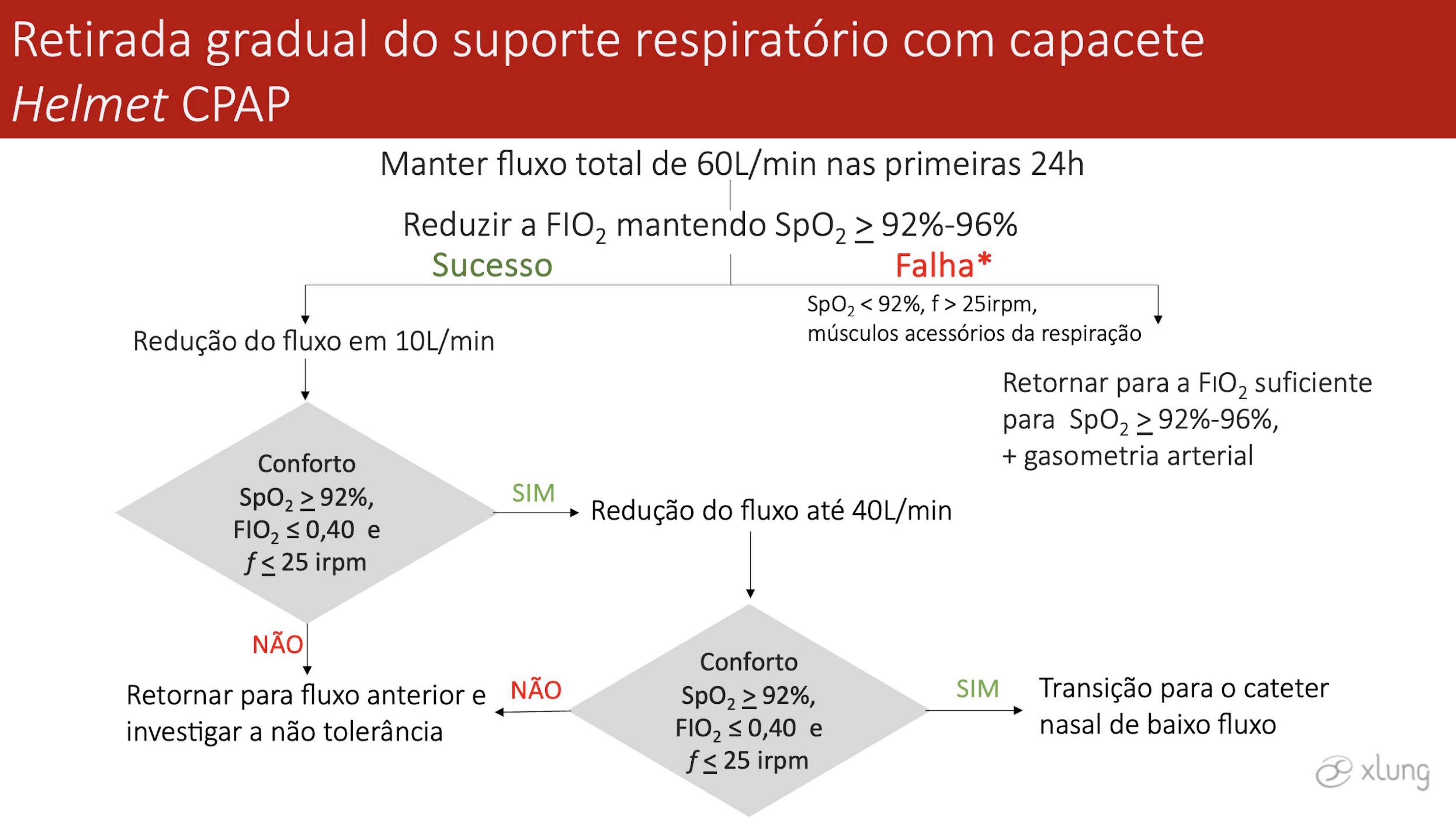 Uma proposta de fluxograma para a retirada gradual do Helmet CPAP com capacete se encontra na Figura 7.